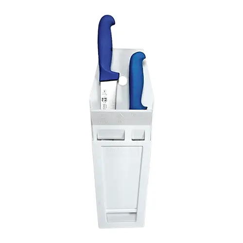Portacuchillos diseñado con un cuello extendido que permite que los cuchillos cuelguen a una distancia más cómoda y accesible. Su pestaña inclinada mantiene los cuchillos seguros y cerca del portacuchillos, evitando interferencias. Tamaño 5″ x 14″