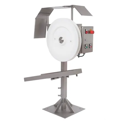 Facilita el trabajo del operario, quien solo necesita guiar las tripas. Compatible con automatización neumática, asegura calidad gracias al perfil de su rueda. Fabricada en acero inoxidable y plástico apto para uso alimentario, es fácil de limpiar y cuenta con protección contra salpicaduras.